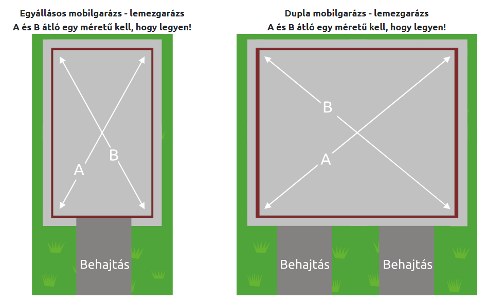 Legjobb megoldás, ha az alap 20 cm-el nagyobb minden irányban a megrendelt fémgarázs/tároló méreténél. Vastagsága min 15cm, vasolt.