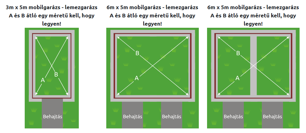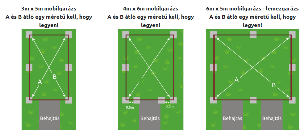 Az alap lehet akár 6 db betonkocka ( egyállásos garázs esetében), ami lehet: beton járdalap, tégla, betonkocka. Nagyobb mobilgarázs esetén a betonkockák számát arányosan növelni kell.